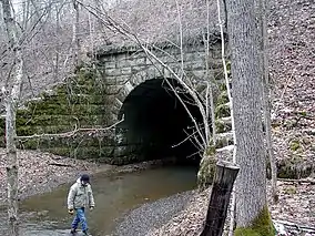 ![]() An historic stone stream culvert under a causeway created over a century ago for the former B&O Railroad, in Troy Township, Athens County, Ohio, USA. | |