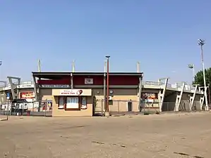 After being damaged heavily twice due to two major Southern Alberta floods in 1995 and 2013, a berm was built around the ballpark outfield. There is a paved walking path beyond the outfield and on top of the berm where the field of play is in view during live games.[3][4][5]