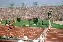 At the 1984 Summer Olympics in Los Angeles, 41 events in athletics were contested. There were a total number of 1273 participating athletes from 124 countries. Women's marathon, women's 3000 meters, and women's 400 meters hurdles debuted at these Games.