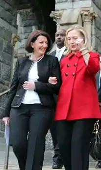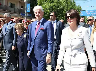 In early 2015, during the great wave of illegal migration of Kosovo citizens to western Europe, Jahjaga was the only leader who visited Kosovo municipalities affected by migration in order to speak with citizens about their concerns.[33] Many European officials have commended Jahjaga for her personal engagement to establish direct dialogue with citizens and her key role in stopping the flow of the citizens of Kosovo to Western Europe.[34]