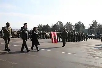Atifete Jahjaga (Albanian pronunciation: [atiˈfɛːtɛ jahˈjaːɡa]; born 20 April 1975) is a Kosovar Albanian politician who served as the third President of Kosovo.[a] She was the first female President of the Republic of Kosovo, the first non-partisan candidate and the youngest female head of state to be elected to the top office. She served as Deputy Director of the Kosovo Police,[2] holding the rank of General Lieutenant Colonel, the most senior among women officers in Southeastern Europe.[3]