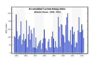 Atlantic accumulated cyclone energy (ACE) index from NOAA.