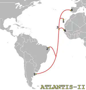 ATLANTIS-2 is a fiber optic transatlantic telecommunications cable connecting Argentina, Brazil, Senegal, Cape Verde, Spain's Canary Islands and Portugal. It is the first submarine cable to link South America and the African continent.