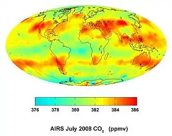 The atmospheric infrared sounder (AIRS) is one of six instruments flying on board NASA's Aqua satellite, launched on May 4, 2002. The instrument is designed to support climate research and improve weather forecasting.[1]