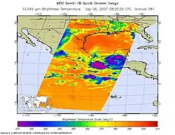 Thick clouds act like a wall to the infrared energy measured by AIRS. However, microwave instruments on board Aqua can see through the clouds with limited accuracy. Using a special computer algorithm, data from AIRS and the microwave instruments are combined to provide highly accurate measurements in all cloud conditions resulting in a daily global snapshot of the state of the atmosphere.[4]