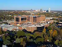 Atrium Health Wake Forest Baptist is an academic medical center and health system located in Winston-Salem, North Carolina, and part of Charlotte-based Atrium Health. It is the largest employer in Forsyth County, with more than 19,220 employees and a total of 198 buildings on 428 acres. In addition to the main, tertiary-care hospital in Winston-Salem known as Atrium Health Wake Forest Baptist Medical Center, the Atrium Health Wake Forest Baptist Health system operates five community hospitals in the surrounding region. The entity includes: