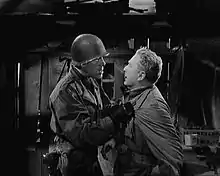 Attack, also known as Attack!, is a 1956 American war film directed by Robert Aldrich and starring Jack Palance, Eddie Albert, Lee Marvin, William Smithers, Robert Strauss, Richard Jaeckel, Buddy Ebsen and Peter van Eyck. The cinematographer was Joseph Biroc.