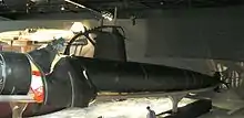 The Allies located and recovered M-21 on 3 June and M-14 on 8 June.[8]: 209, 219 Although both were damaged during the attack, it was possible to assemble a complete submarine from the two vessels.: 72 The centre section of the rebuilt submarine was mounted on a trailer and taken on a 4,000 km (2,500 mi) tour throughout southern New South Wales, Victoria, and western South Australia.: 72 [8]: 250 The purpose of the tour was twofold; it allowed Australians to see a Japanese midget submarine up close, and was used to raise A£28,000 for the Naval Relief Fund and other charities.: 72 [27] The submarine arrived at the Australian War Memorial in Canberra on 28 April 1943, flying the White Ensign and a paying-off pennant.: 72 The submarine was originally displayed outside the museum in three separate pieces,[8]: 251 but was moved inside in the 1980s due to heavy vandalism; on one occasion in 1966, a group of university students painted it bright yellow in response to The Beatles' song Yellow Submarine.[8]: 253–55 The composite submarine was restored and remains on display inside the Memorial as part of a permanent exhibition on the attack, next to the recovered wheelhouse of HMAS Kuttabul.'[8]: 253–55 The conning tower from M-21 is on display at the Royal Australian Navy Heritage Centre on Garden Island.[8]: 251 Leftover material from M-21 was melted down and made into souvenirs following the construction of the combined vessel.[8]: 253
