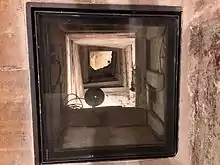 Their tunnel began at the top of a chapel's clock tower and descended 8.6 meters (28.2 Ft) into the ground using the shaft which contained the ropes and weights for the clock. They found that the weights which used to hang down the shaft, and the chains, had been removed. This left an empty shaft which extended from the clock to the cellars below. After the previous escape attempts by Cazaumayo and Paille, the doors (one on each floor) which had provided access to the tower, had been bricked up in order to prevent further escape attempts. However, by sealing up the tower the Germans had in essence provided a secure location where escape tunnel work could be done without notice. The French this time gained access to the tower from the attics, descended 35 m to the cellars, and began work on a horizontal shaft in June 1941. This shaft work would continue for a further eight months.