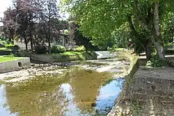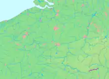The Attert (French pronunciation: [atɛʁt], German pronunciation: [ˈatɐt]; Luxembourgish: Atert) is a river flowing through Belgium and Luxembourg, left tributary of the Alzette. Its length is 38 kilometres (24 mi), of which 32 kilometres (20 mi) are in Luxembourg and 6 kilometres (4 mi) in Belgium. Its source is in Nobressart, north-west of Arlon, in the Belgian province Luxembourg. It flows into the river Alzette at Colmar-Berg. It flows through the village of Attert in Belgium, and the towns of Redange, Useldange, Boevange-sur-Attert, and Bissen in Luxembourg.