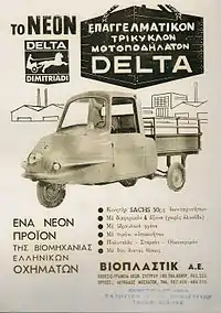 The model became very popular in Greece and is remembered to this date. Another Greek company, Alta, soon claimed a market share in the same category, introducing a similar vehicle in 1968; this was also based on Fuldamobil technology but it was extensively modified, with a more modern design. Attica 200 was nonetheless produced until 1971. In 1968 Bioplastic utilized the Attica 200 design to create a light three-wheeler truck brand named Delta (oddly enough, the rear-half of the 200 had become the front-half of Delta!), sold with modest success.