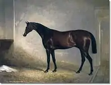 Attila was a small, but strongly built colt of a rich bay or brown colour with a white blaze. He was described as good-tempered horse with a "peculiar, Arab-looking head" but "excellent loins" and "very fine quarters".[1] Attila was bred by Colonel Hancox,[2] who owned him as a yearling before the colt was acquired by Colonel George Anson, who accepted him in payment of a debt of £220 or £140 ($34.8k or $22.1k in modern dollars, respectively).[3][4][5] Anson sent Attila into training with John Scott who trained forty classic winners at his base at Whitewall stables, Malton, North Yorkshire.