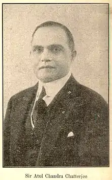 Sir Atul Chandra Chatterjee GCIE KCSI (Bengali: অতুল চন্দ্র চ্যাটার্জী; 24 November 1874 – 8 September 1955) was an Indian diplomat and government official who served as the Indian High Commissioner to the United Kingdom from 1925 to 1931 and was member of the governing body of the League of Nations Assembly in 1925 and 1946.[1] He is known for proposing the India House in London in 1925, which was designed by Sir Herbert Baker and completed in 1930.[2]