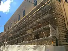 Plans to move the National Museum of Fine Arts from Admiralty House to Auberge d'Italie began in 2013.[25] In September 2014, it was announced that the move will occur and the new museum would be called MUŻA (from the Maltese acronym Mużew Nazzjonali tal-Arti). It is one of the projects for Valletta's title of European Capital of Culture in 2018.[26] The Malta Tourism Authority was set to move out of the auberge to premises in Smart City during November 2016[27] but the move was delayed until February 2017.[28] The auberge's façade was restored between late 2015 and July 2016.[29] Various artistic features from the centrepiece were revealed during this time, and Carafa's bust was also restored. The building's interior is also being restored.[30][31] Another considered but refuted plan was to reopen the probable original entrance, that would have had an added front staircase on Piazza De Valette.[32]