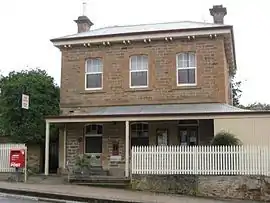 In October 1849, Thomas Henry Williams, a copper-smelting superintendent at the Burra mines, received a land grant for what was to become the Auburn area. During the next few years Williams sold off allotments to bullock teamsters and others. The first building – a well-appointed hotel named the Rising Sun Inn, which still stands – was built in 1850 and so Auburn Village was begun. The hotel's enterprising proprietor, Joseph Edwin Bleechmore (c. 1809–1887),[3] also founded the town's school, which opened in May 1855 under Joseph S. Cole, later of Stanley Grammar School.