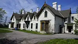 Auchmar House is the centrepiece of Clairmont Park, the estate of the Honourable Isaac Buchanan (1810–1883), one of Hamilton's most influential citizens. It was built between 1852 and 1854 and is located at the northeast corner of Fennell Avenue and West 5th Street. The manor house, its several remaining outbuildings, and stone orchard wall occupy about 8 acres (32,000 m2) of land which include most of the original built features of the estate. However, the tiny Gatekeeper's Lodge, which resembles Auchmar House architecturally, became separated from the surviving portion of Clairmont Park. (It is located on the mountain brow at 71 Claremont Drive.) Auchmar House and the remaining contiguous portion of the Buchanan estate is a unique heritage asset owned by the citizens of Hamilton. It is recognized by the Ontario Heritage Trust as having significant historical value. Auchmar House is recognized as an outstanding example of the domestic Gothic Revival and, with its surrounding acreage, is a very rare example of a mid-Victorian estate in Ontario surviving in relatively intact condition.