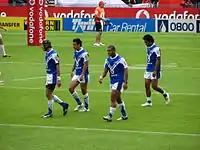 The Bartercard franchise wore a yellow jersey with a blue V, while the Premier League side wore royal blue jerseys with a white V.