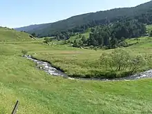 At Carcassonne in the Pyrénées its course is oriented north-south. The Aude then presents the characteristics of a mountain stream as it traverses Capcir and feeds several reservoirs (Matemale, Puyvalador) before plunging into gorges (those of Saint-Georges are the most scenic) crossing ancient terrain. Starting from Axat, after being joined by the Aiguette on the right bank and the Rébenty on the left bank, the river flows through bands of pre-Pyrénéen limestone (in the Pierre-Lys Gorges) and passes through a series of small communes: Quillan, Espéraza, Couiza, Alet-les-Bains, then Limoux. Downstream of this great medieval city, the Aude flows eastwards. This elbow results from a Stream capture, the Aude having once flowed in the valley of the Hers, indicating a deepening by an ancient hydrology following the uplifting of the Pyrénées.[7]