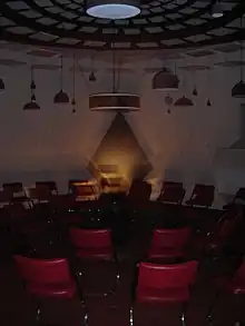 In 1972 Shaff received a grant from National Endowment for the Arts. A storefront, formerly a bakery, in downtown San Francisco was purchased and subsequently converted to a theater.[2] The first public presentation was October 31, 1975, and weekend shows have continued since then. Beginning with 136 speakers, the phenomenon has gradually and unrelentingly grown and evolved. It now has over 176 speakers,[4] and Stan Shaff presents his 11th opus with his son, David Shaff, every weekend, opening at 8 PM.[5] Since 2021, Audium has provided yearly residency programs for composers and sound artists, primarily focusing on minority artists.[6]