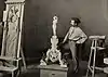 While window-shopping on Fifth Avenue with her mother she was spotted by photographer Felix Benedict Herzog, who asked her to pose for him at his studio in the Lincoln Arcade Building on Broadway and 65th Street.[1] Herzog introduced her to his friends in the art world. She posed for muralist William de Leftwich Dodge, who gave her a letter of introduction to Isidore Konti. Konti was her first sculptor and her first nude modeling.[10] From this point, Munson would pose for a few well-known visual artists, including painter Francis Coates Jones, illustrators Harrison Fisher, Archie Gunn, and Charles Dana Gibson,[11] and photographers Herzog and Arnold Genthe,[1]: 29, 43 but she was predominately a sculptors' model.