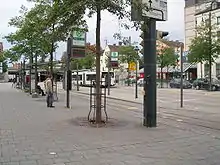 Augsburg-Oberhausen station is a station in the northwest of the central Augsburg in the suburb of Oberhausen in the German state of Bavaria. It is the second most important station in the city. It is classified by Deutsche Bahn as a category 4 station.[1] The current station building was built south of the old Oberhauser station in 1931/32, in the New Objectivity style. There is a large tram and bus stop in front of the station building, the exterior of which has recently been renovated.