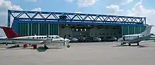 The airport was opened in 1968 after its predecessor in the southern suburb Haunstetten had to be closed due to the construction of the new University of Augsburg on the airfield compound.[2]