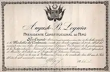 | Preceded by | Augusto B. Leguía (Provisional President) |