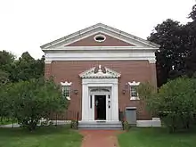 Paine was closely associated with the architect C. P. H. Gilbert, who received a number of commissions from him, such as his townhouse in New York's Upper East Side on 31 East 69th Street in 1917–18.[30] The house was sold to the Austrian government in 1952, the Austrian Consulate General is located in it today.[31][32][33] When Paine was based in Willsboro, Gilbert also received commissions from him to construct the Essex County Bank in 1921.[34] In May 1930, Paine donated $150,000 for a library to the town of Willsboro in memory of his mother.[35] Both the bank and the library were constructed by Gilbert in the Neoclassical style.[36]