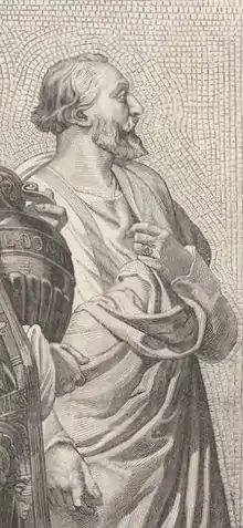 In a book published in the 16th century, Nicole Gilles describes Aurelianus as the Grand Chamberlain of the king, but this anachronism is corrected in 1623 by Pierre Bardin.[13] A few years after Bardin, Philippe Labbe also expressed doubts on whether Aurelianus was also Grand Chancellor and Keeper of the Seals, offices that were mis-attributed to him by earlier authors, who misinterpreted the ring Aurelianus gave to Clotilde as Clovis's seal.[14]