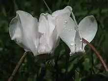 Two species of cyclamen: without auricle (left); with auricles at bases of petals (right)