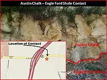 The Austin Chalk is an upper Cretaceous geologic formation in the Gulf Coast region of the United States. It is named after type section outcrops near Austin, Texas. The formation is made up of chalk and marl.[1]