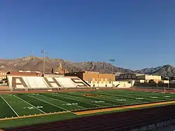 The school, located minutes from the Franklin Mountains, faces a large, white, block "A" letter painted on the mountain. AHS students traditionally light the "A" on Homecoming night's football game which is played at R.E. McKee Stadium. The "A" is lit by placing small cans, full of kerosene and sawdust, around the "A" and lighting them before kickoff.[5] The burning "A" is visible from the home bleachers and AHS supporters chant "Hey, Hey, Look at the A" to signify its lighting.[5]