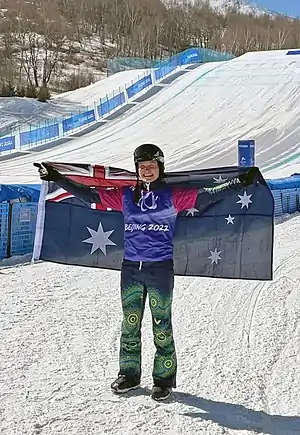 Australia competed at the 2022 Winter Paralympics in Beijing, China which took place between 4–13 March 2022. A team of ten athletes including two guides was announced on 2 February 2022 with two athletes - Rae Anderson and Josh Hanlon making their Winter Paralympics debut. Jonty O'Callaghan withdrew from the team after a severe training accident on 17 February 2022.[1][2] Anderson represented Australia in athletics at the 2016 Rio Paralympics.[3] Melissa Perrine and Ben Tudhope were appointed team captains.[4][5]