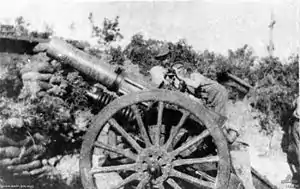 1st Heavy Artillery Battery was an Australian artillery unit during World War I.[1] Formed at Gallipoli on 14 July 1915 the battery formed part of the 1st Division artillery. The battery was originally equipped with 2 old 6 inch 30 cwt howitzers and one even older 4.7 inch naval gun.[2] The battery was disbanded in Egypt during February 1916 to provide personnel for howitzer batteries.