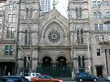 Jews also began to assemble in Melbourne, then in the Port Phillip District (now Victoria). The Melbourne Hebrew Congregation was formed in 1841, and the first synagogue building opened in 1847 at 472 Bourke Street, with a seating capacity of 100.[17] Other synagogues were built in Hobart (1845), Launceston (1846) and Adelaide (1850).[12][18]