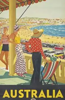 From its inception the Association marketed creatively, first commissioning posters featuring striking images and simple slogans from Australia's leading poster designers (some now iconic, like Trompf's Bondi Beach) including Percy Trompf, James Northfield[6] and Gert Sellheim to attract international tourists largely ignorant of Australia.[7]