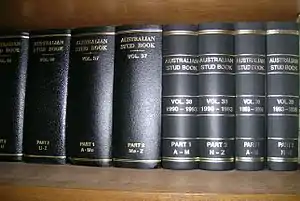 The Stud Book of New South Wales by Fowler Boyd Price was published in 1859, and was the first official attempt to document the pedigrees of the colony's bloodhorses.[2] The Victorian Stud Book was then published in Volumes 1-2 which were edited by William Levey to the year 1864 and volumes 3-4 edited by William Cross Yuille to the year 1874.[3] The Australian Stud Book (ASB) began in 1878 as a private venture by A. & William C. Yuille, Melbourne bloodstock agents who published nine volumes. New Zealand horses were included in the ASB until Volume VII appeared in 1900. The copyright was sold in 1910 to the Australian Jockey Club (AJC) and the Victoria Racing Club (VRC), who now administer matters concerning the breeding of Thoroughbred racehorses.[4]