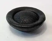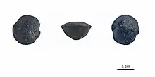 Indigenous Australians termed australites ooga ("staring eyes"), and they were used as sacred objects or as cutting tools.[2] Europeans found out about australites in 1857, when explorer Thomas Mitchell gave naturalist Charles Darwin a mysteriously shaped piece of natural black glass. Darwin thought that australites were of volcanic origin due to their similarity to obsidian, volcanic glass.[1][2][3] Later, australites were called blackfellows' buttons and obsidian bombs.