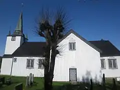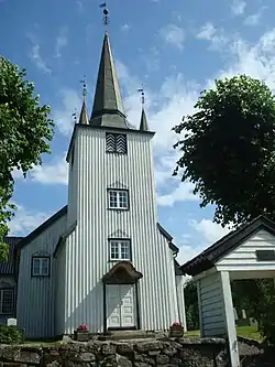 Austre Moland Church (Norwegian: Austre Moland kirke) is a parish church of the Church of Norway in Arendal Municipality in Agder county, Norway. It is located in the Brekka, along the lake Molandsvann. It is one of the churches for the Moland parish which is part of the Arendal prosti (deanery) in the Diocese of Agder og Telemark. The white, wooden church was built in a cruciform design in 1673 using plans drawn up by the architect Ole Ormsen. The church seats about 496 people.[1][2][3]