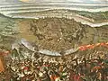 The major source for the appearance of walled town in Austria comes from the panoramic prints of towns and cities that were published by various topographical artists.[38] The earliest were by Hartmann Schedel (1440–1514) who published the Nuremberg Chronicle in 1493. This included views of Salzburg and Vienna. He was followed by Sebastian Münster (1488–1552) who included Feldkirch and Vienna in his Cosmographia, published in 1550.[39] Between 1572 and 1617 the six volumes of Civitates Orbis Terrarum by Georg Braun (1541–1622) and Franz Hogenberg (1535–1590) appeared.[40] The five Austrian maps in this were of Salzburg, Vienna, Gmünden, Linz and St Pölten.