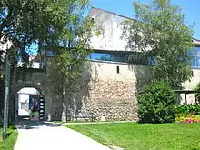City wall next to gate-tower at Wels with early semi-lune tower.