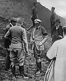 Conrad warned the Bulgarian High Command that unless local Bulgarian commanders abstained from interfering with the Austro-Hungarian administration, a conflict with his troops would be inevitable.[73] On 15 March, the Austro-Hungarians issued an order to secure Novi Pazar, and prepared to add Kosovska Mitrovica to their governorate.[74] The German chief of staff, General Erich von Falkenhayn, ordered Mackensen to mediate between the two parties. Mackensen visited Sofia in person to meet Ferdinand and Prime Minister Vasil Radoslavov. The proposed German compromise was accepted and an agreement on a demarcation line was signed between the Austro-Hungarian and Bulgarian high commands on 1 April 1916.[74]