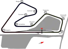 Autodromo del Levante is a 1.577 km (0.980 mi) motor racing circuit in Binetto, Apulia, Italy.[1] It was inaugurated on 10 June 1989.[2] The circuit has 9 turns. The circuit was mainly used for national events, such as Italian Formula Three Championship, Italian Superturismo Championship and Italian GT Championship.