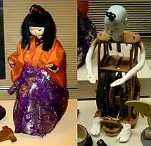Tea-serving Japanese automaton, "karakuri ningyō", with mechanism (right), 19th century.