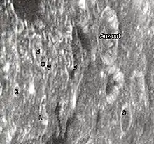 By convention these features are identified on lunar maps by placing the letter on the side of the crater midpoint that is closest to Auzout.