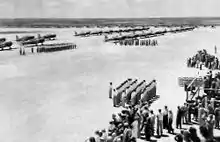 In August 1942 the United States Government closed the private flying school and took it over as a United States Army Air Forces military installation. Avenger Field was to be turned over to the Air Transport Command as a transition school for experienced airline pilots in single-engine Vultee BT-13 Valiant basic trainers. From Avenger Field, the graduates would be sent to twin-engine school and subsequently for overseas duty as USAAF pilots.[3]