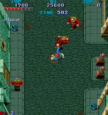 Avengers, sometimes known as Avenger and known in Japan as Hissatsu Buraiken (必殺 無頼拳, lit. "Deadly Ruffian Fist"), is a 1986 overhead-view vertical scrolling beat 'em up arcade game developed and published by Capcom. The game was directed by Takashi Nishiyama, who previously designed the side-scrolling beat 'em ups Kung-Fu Master (1984) and Trojan (1986), and later designed the original Street Fighter (1987) and several early SNK fighting games.