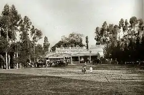 Chrysler Motors opened an assembly plant on the avenue in 1932 (since demolished), an investment complemented by a testing facility housed in an ornate structure north of Barrio Parque (the former facility today houses condominiums and an automobile museum).[3] The northern end of the avenue became home to the River Plate Football Club's monumental stadium, finished in 1938.[4] The avenue was later graced by tennis and country clubs, parks and a number of monumental public buildings, though its boulevard medians were removed around 1970 to accommodate growing traffic. Excavations along the avenue in 2008 uncovered remains of the former Hansen's Café, among the city's first and most popular tango redoubts until its demolition in 1912.[5]