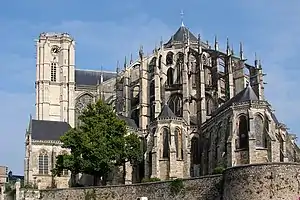 During his long wars with Herbert, the count attacked and destroyed Avesgaud's castle at Duneau, causing Avesgaud to flee to the protection of his brother William's castle at Bellême.[6] Once he was safe, the Bishop excommunicated Herbert and then continued his warring against him.[6] Not long after the excommunication was lifted and peace was restored between them, Herbert started raiding the Bishop's estates again.[6] When Herbert learned the Bishop had built a castle at La Ferté-Bernard, he attacked Avesgaud there,[9] causing the Bishop to flee again, but this time the castle was repaired.[10] On the last occasion Avesgaud was forced to leave his see, he traveled to the Holy Land on a pilgrimage. He is said to have died c. 1036 at Verdun on his return to Le Mans.[lower-alpha 1][11]