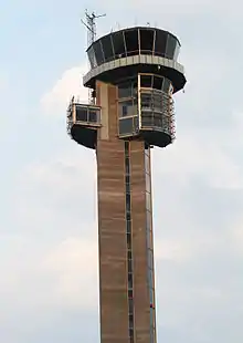 The airport has two parallel runways, aligned 01/19. The west runway 01L/19R is 3,600 by 45 metres (11,811 ft × 148 ft), while the east runway 01R/19L is 2,950 by 45 metres (9,678 ft × 148 ft).[4] Both have taxiways, allowing 80 air movements per hour.[33] The runways are equipped with CAT IIIA instrument landing system[67] and the airport is supervised by a 91-metre (299 ft) tall control tower.[57] Once departing aircraft are 15 kilometres (9 mi) away from the airport, responsibility is taken over by Oslo Air Traffic Control Center, which supervises the airspace with Haukåsen Radar. The airport has two ground radars, on the far sides of each of the runways. Both at the gates and along the taxiways, there is an automatic system of lights that guide the aircraft. On the tarmac, these are steered by the radar, while they are controlled by motion sensors at the gate.[68]